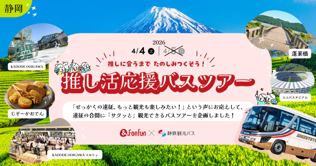 この度、アプリをご利用の皆様へ、特別なリアルイベントのお知らせです。 静岡のバス会社「静鉄ジョイステップバス」様とタッグを組み、エコパアリーナ公演に向けた「推し活バスツアー」を企画いたしました!